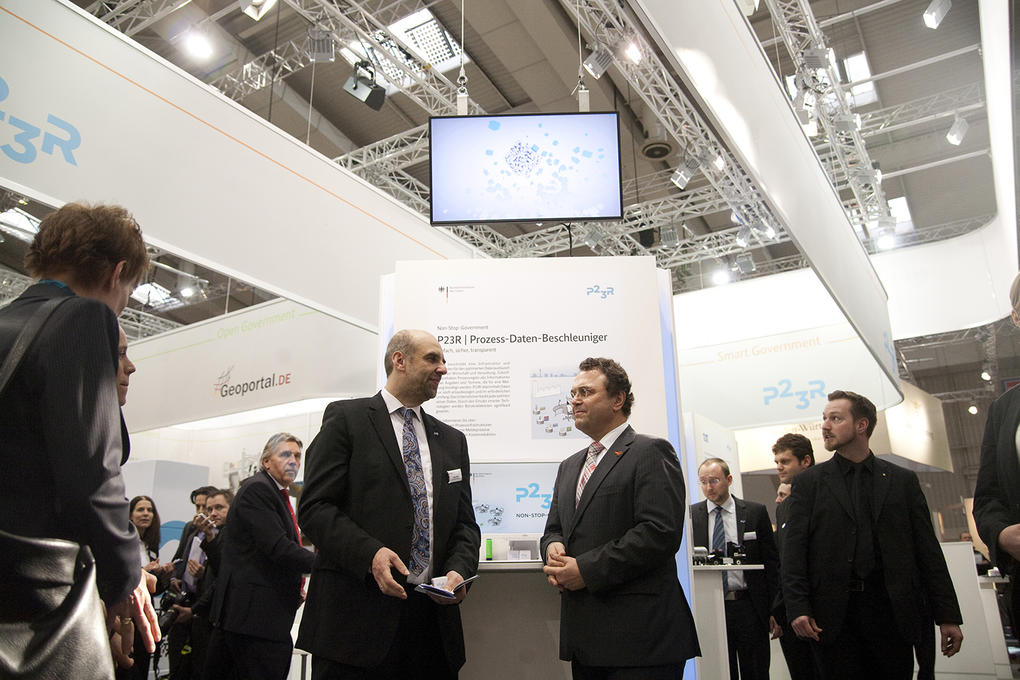 Das P23R-Prinzip umfasst Grundlagen und Methoden, die den Datenaustausch zwischen Wirtschaft und Verwaltung einfacher, sicherer und transparenter gestalten. Für den Messestand der Bundesbeauftragten für IT (Bundesministerium des Innern) im Ausstellungsbereich Smart Government, visualisierte Studio GOOD eine begleitende Animation, die die Kernwerte des P23R Prozess-Daten-Beschleunigers übersichtlich und spannend veranschaulicht.