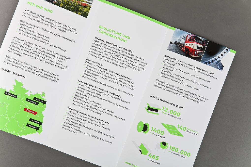 Seit über 10 Jahren initiiert, plant und betreibt NOTUS Windparkprojekte und gehört mit einem Team von über 100 Mitarbeitern sowie mehreren nationalen und internationalen Niederlassungen zu den führenden Unternehmen der Branche. Diese positive Entwicklung und die steigende Marktkonkurrenz erforderte eine gestalterische Neuausrichtung, bei der Studio GOOD dem Unternehmen hilfreich zur Seite standen.